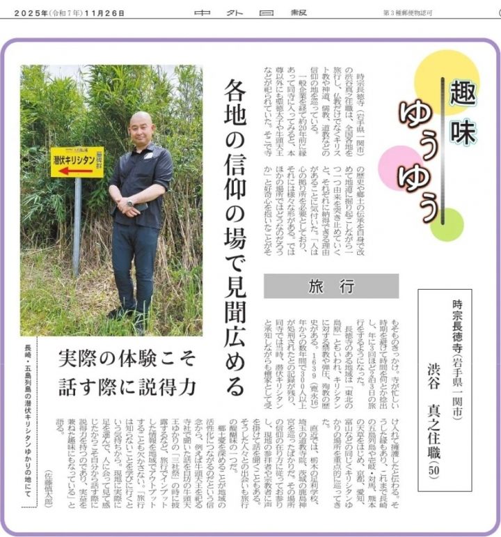 〈中外日報さんより掲載紙面が届く〉 先日お問い合わせがあり、 取材内容を丁寧にまとめて頂いた…。